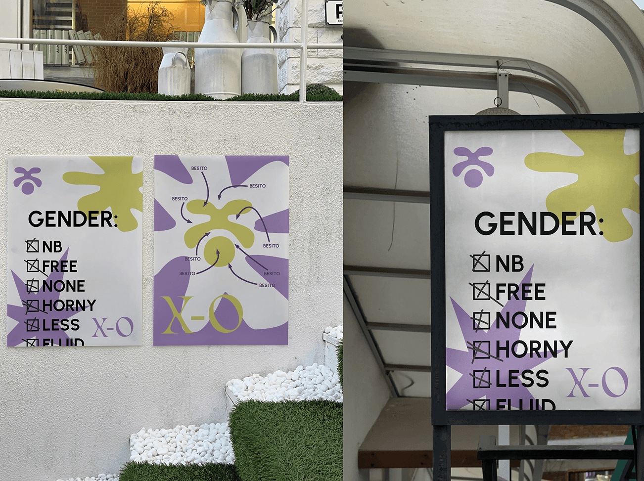 This project was approached by Elena Ruda, a fellow designer, and me for a Hackathon contest. We had two weeks to conceptualize and propose a brand and campaign, targeting non-binary people in 2045. Our challenge was to rethink this product to appeal to a more rebellious and nonconforming audience, often overlooked in this type of advertising. We created X-O because we believed that a gender-nonconforming person would feel represented by "X-O" rather than the traditional XX and XY chromosome scheme. Since everyone deserves representation, X-O also stands for "kiss and hug" in SMS, offering a retro-futuristic nod to this groundbreaking shift in written language.
